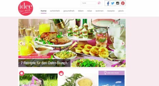 Jeden Tag erwartet moderne Frauen auf der Startseite von „Idee für mich“ zudem die „Idee des Tages“ sowie die „Inspiration des Tages“. Auch die Social-Media-Kanäle Facebook, Twitter, Instagram und Pinterest sollen regelmäßig bespielt werden.