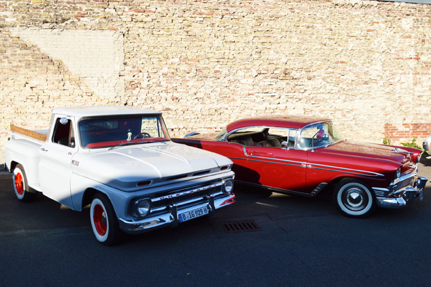 Der Grill samt hübsch-herbstlich dekorierten Bierzeltgarnituren und gehussten Stehtischen stand im ruhigen Hof der US Car Classics in der Großbeerenstraße, und klassisches Detroit Iron sollte auch mannigfacher Form erscheinen. Neben Mopars, also allen Fahrzeugen des Chrysler-Konzerns waren natürlich auch die Fans von General Motors der Ford Motor Company vertreten, von denen gar nicht mal wenige nicht aus Berlin, sondern den Nachbarlandkreisen stammte. Dank nicht vorhandener Baujahrsbegrenzung kam ein bunter Durchschnitt der amerikanischen Automobilgeschichte zusammen. Das Publikum beim Mopars and Coffee Season Closer selbst erwies sich als mustergültig: keine Burnouts, keine angetrunkenen Fahrer, keine Hifi-Demonstrationen, stattdessen volle Rücksichtnahme auf Kinder und Hunde beim allenfalls sporadischen Vorführen von Motoren.
